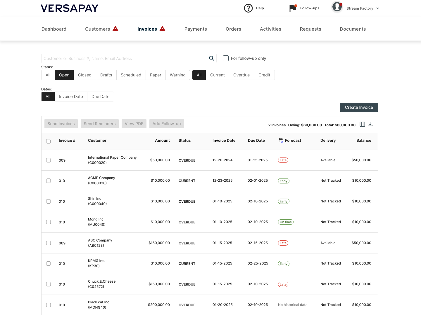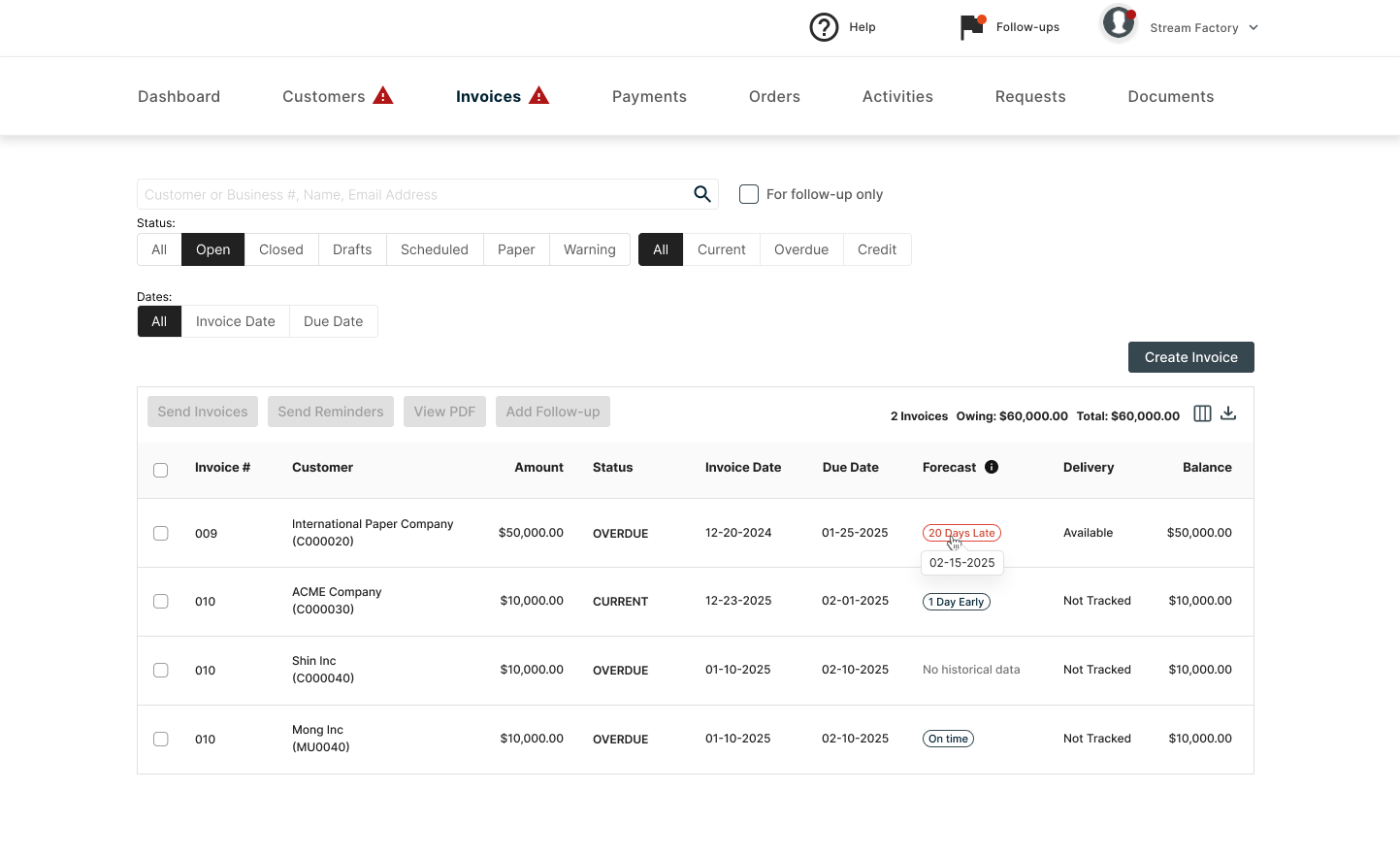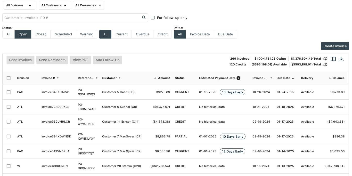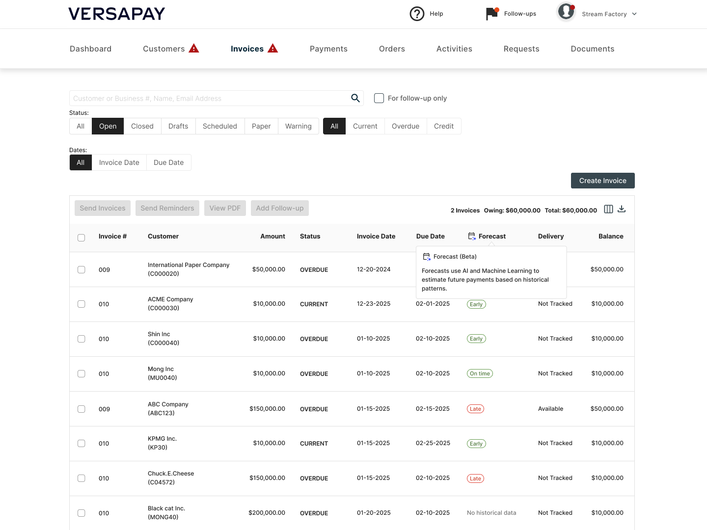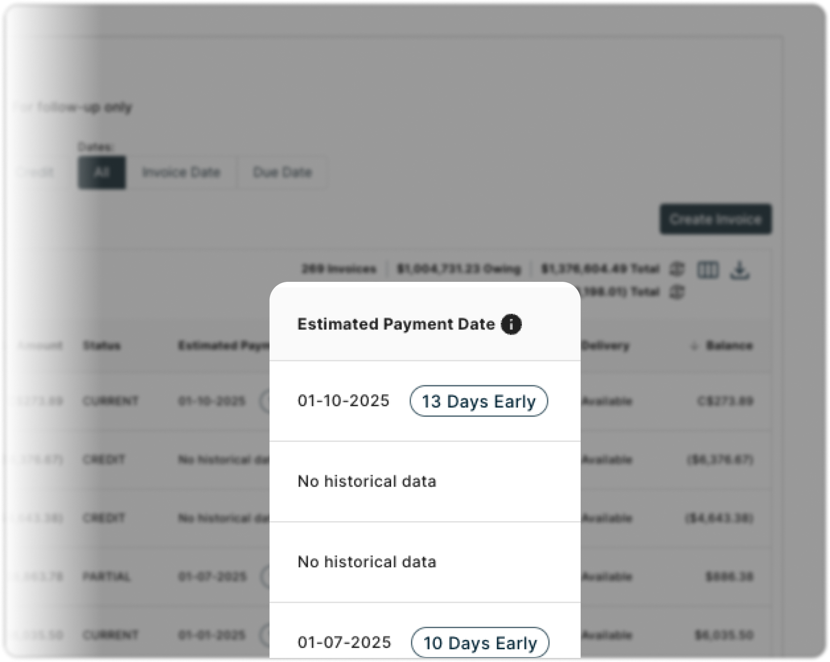 We use AI and Machine Learning to analyze historical payment patterns. That data is used to estimate payment estimations from an invoice publish date.Give it a try! To see a payment estimate for an invoice, hover over any estimate in the Forecast column.
