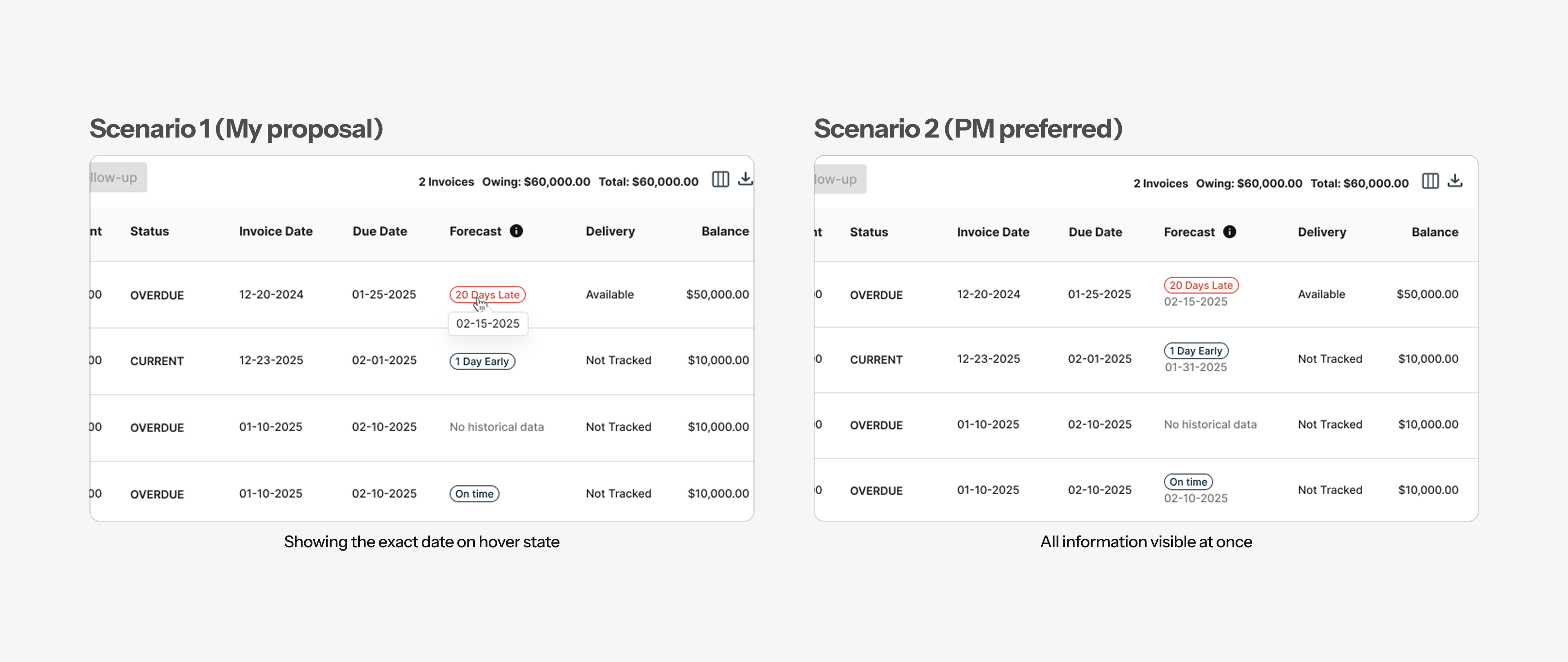 I led the redesign of Forecast AI, an invoice payment prediction feature, to address a deeper trust issue hiding behind a simple UI request.