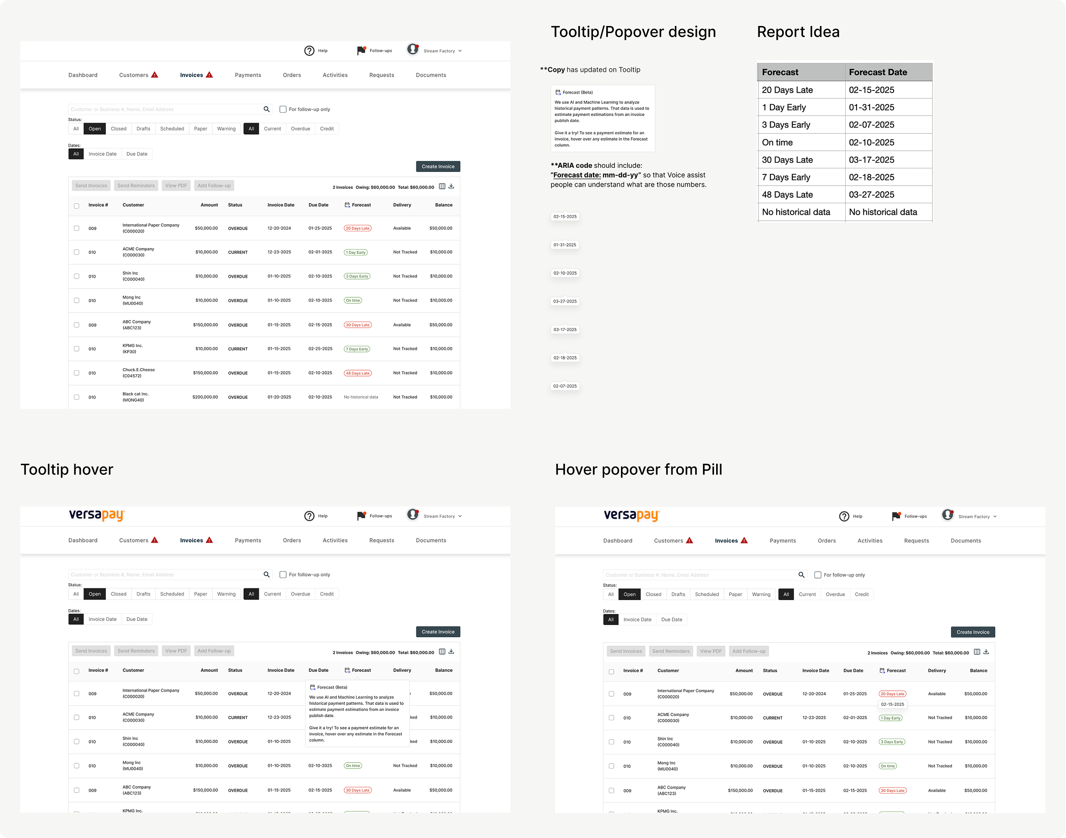 To reinforce that mental model, I paired the name with concise tooltip copy that explains the prediction is AI-generated and based on historical payment behavior.