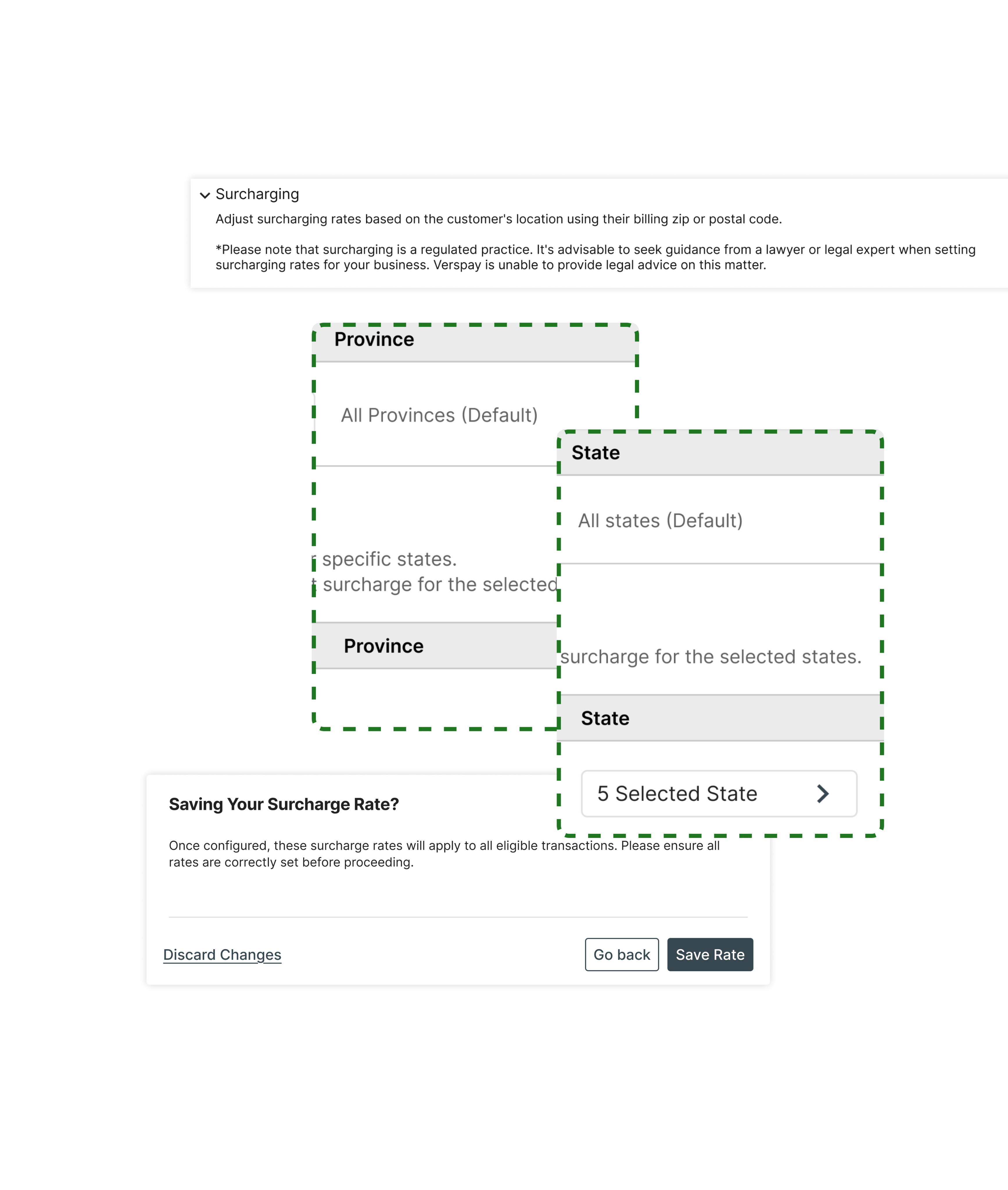 Warning modal before user saves the surcharging